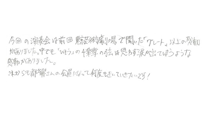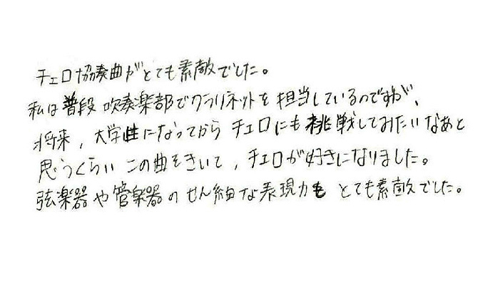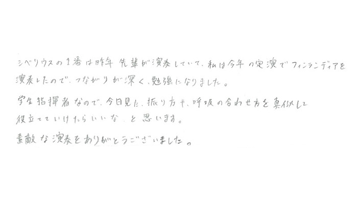 フィンランド出身、チェリストにして指揮者のクラウス・マケラが都響に初登場!子どもたちは、ピアノ協奏曲でソリストのルーカス・ヴォンドラチェクとの息の合った演奏にも驚いたようでした。フィンランディアを演奏したこともある、という学生もいて、プロの演奏に感動しました、と綴ってくれました。