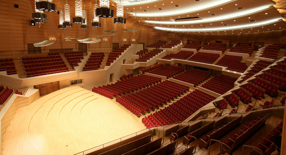 都心にありながら、季節の変化を味わえる緑も多い贅沢な空間です。ステージを客席が取り囲む構造は、演奏家と聴衆が一体となり臨場感あふれる音楽体験を 共有できるようにされたもの。