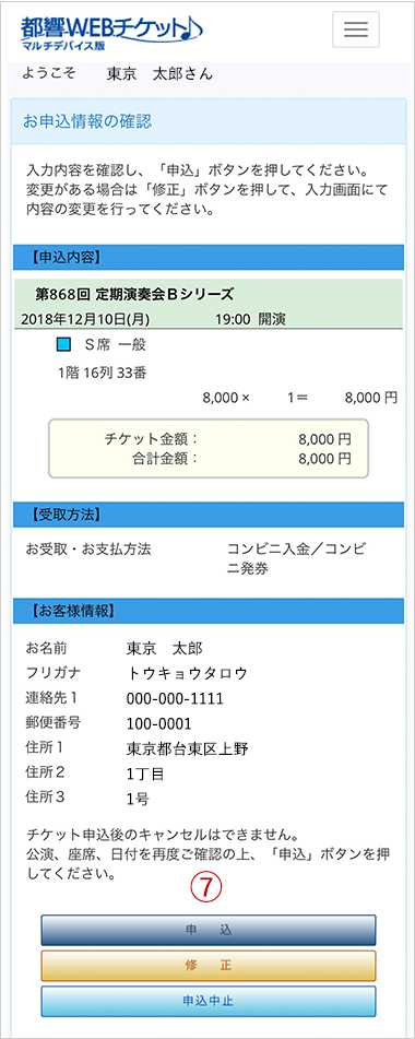 インターネットからのチケット購入方法[マルチデバイス版] - チケットお申込方法